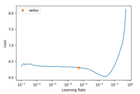 Let’s start training our model! As you know, learning rate is one of the most important hyperparameter in training neural network. Fortunately, fastai has convenient learning rate finder that gives us a sense of how changing learning rate affects losses in the model.
